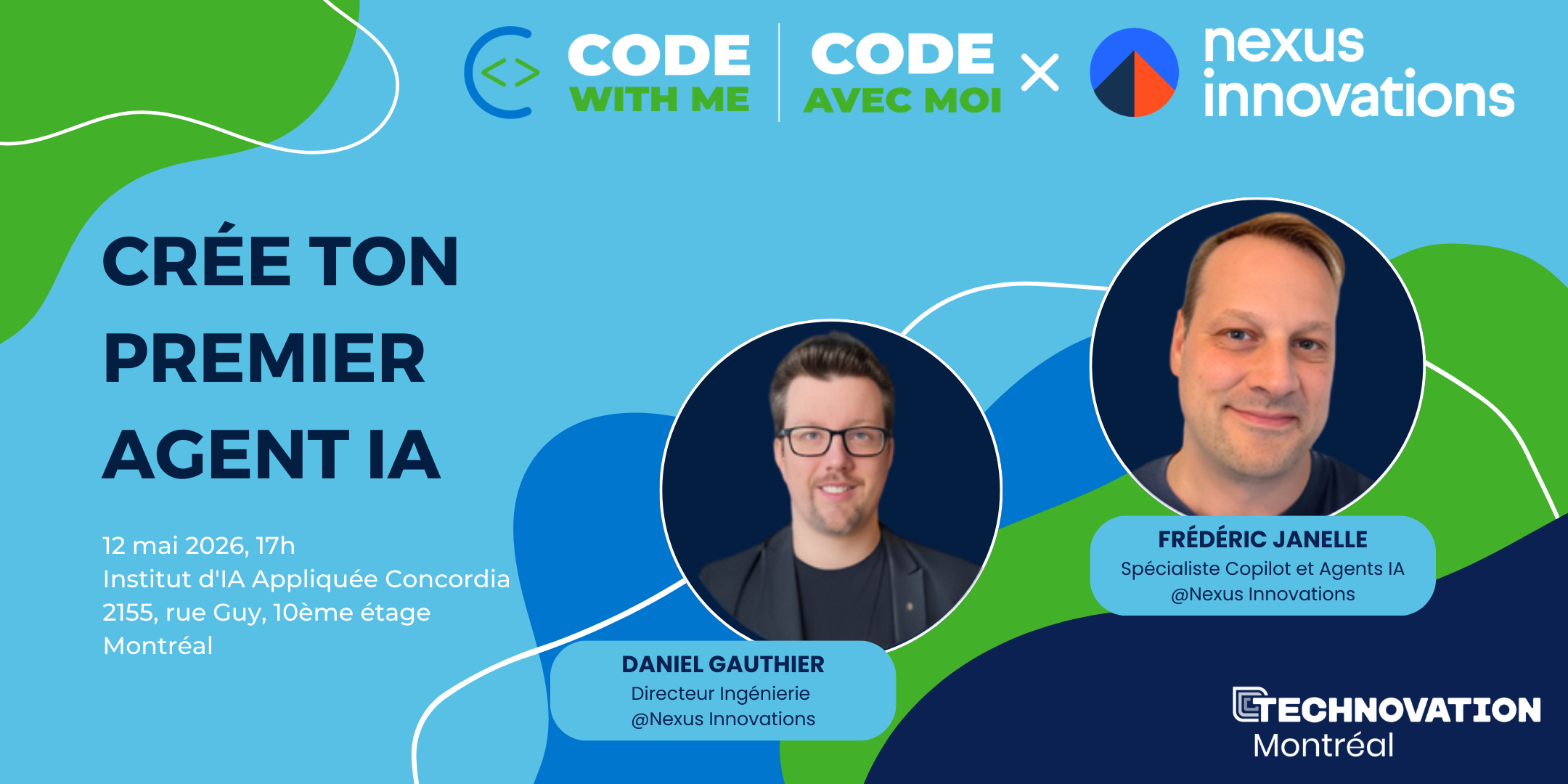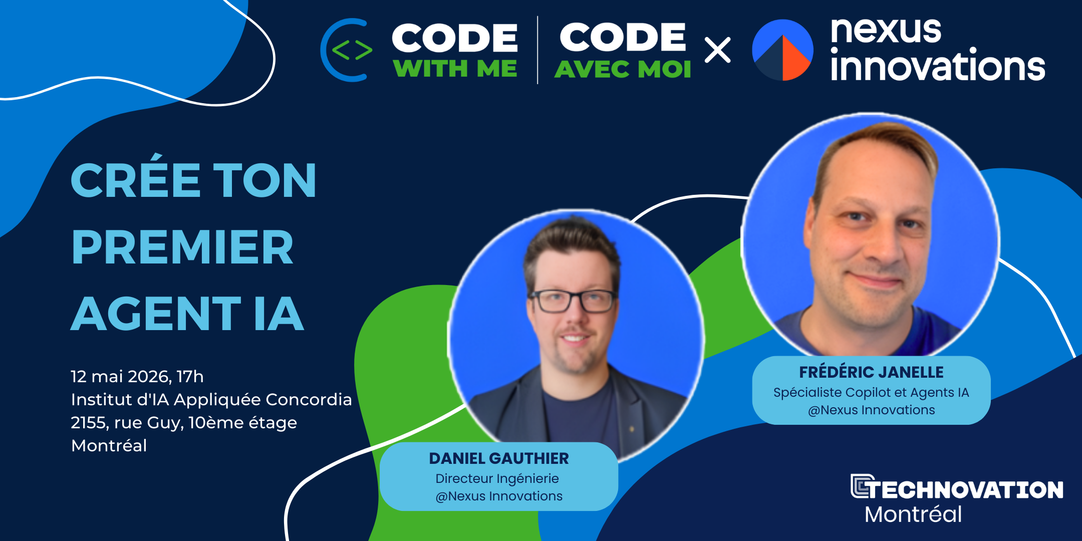 Le 12 mai 2026, nous aurons le plaisir d’accueillir Frédéric Janelle, spécialiste Copilot et agents IA, ainsi que Daniel Gauthier, directeur engineering chez Nexus Innovations.